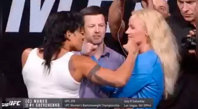 Valentina Shevchenkopecó de inocente al momento del careo y recibió una caricia de su contrincanteAmanda Nunes.