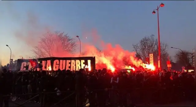 En la previa al Real Madrid vs PSG, un grupo de fanáticos Parisinos aparecieron repentinamente en el hotel donde concentra el Real Madrid, tuvo que aparecer la Policía para que la protesta termine.