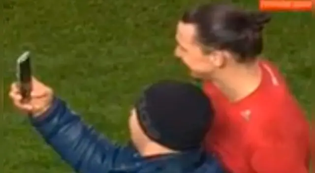 Ibrahimovic con humor observó como el hincha eludió la seguridad para llegar a él y tras una sonrisa accedió sin problemas la fotografía cumpliendo el sueño de uno de sus seguidores.