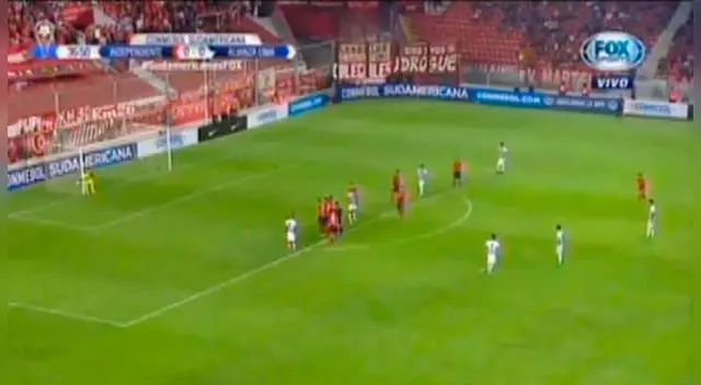 Luis Aguiar pudo regalar un golazo de tiro libre, pero el portero uruguayo de Independiente se estiró para quitarle el grito.