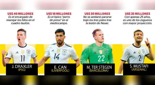 México está valorizado en us$ 120 millones. Alemania vale US$ 235 millones.