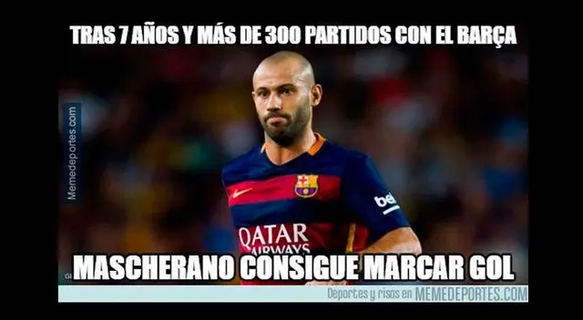 El Barcelona vs. Osasuna dejó graciosos memes por la goleada que protagonizó el cuadro 'catalán' donde hubo tres dobletes donde Lionel Messi, André Gómes y Paco Alcácer fueron las figuras. Al igual, Javier Mascherano entró a las historia del club al marcar su primer gol con la camiseta 'azulgrana' tras su llegada hace 7 años.