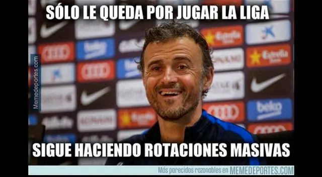 Los memes apuntaron a Luis Enrique quien sigue haciendo rotaciones pese a estar eliminado de la Champions League. Lionel Messi, Gerard Piqué y Javier Mascherano también fueron puntos de burlas.