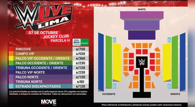 Si alguna vez soñaste con ver en vivo a Seth Rollins, AJ Styles, Finn Bálor o Roman Reigns esta es tu gran oportunidad. WWE ya anunció su regreso a Lima este viernes 7 de Octubre, y este martes los precios de las entradas vieron la luz. Puedes conseguirlas en módulos de Teleticket (Lima, Trujillo, Chiclayo y Arequipa) y a través de www.teleticket.com.pe desde este 1 de Agosto pagando con tarjetas Interbank. A partir del 03 de Agosto se habilitará la venta para todos los demás medios de pago.