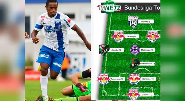 Los goles y las grandes jugadas que realizó el ex delantero de Alianza Lima le siguen dando otro aire para consolidarse en el fútbol austriaco. Reyna figura como único delantero dentro del esquema planteado por la Bundesliga del país europeo.