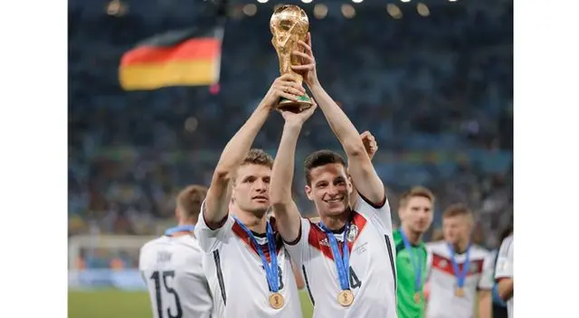 Müller y Draxler levantando la Copa del Mundo en Brasil