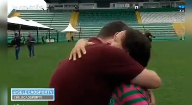 La nota terminó en un interminable abrazo que conmovió hasta los conductores en el set de televisión. La escena se dió en el campo de Chapecoense donde están a la espera de los 71 cuerpos que llegarán desde Colombia repatriados.