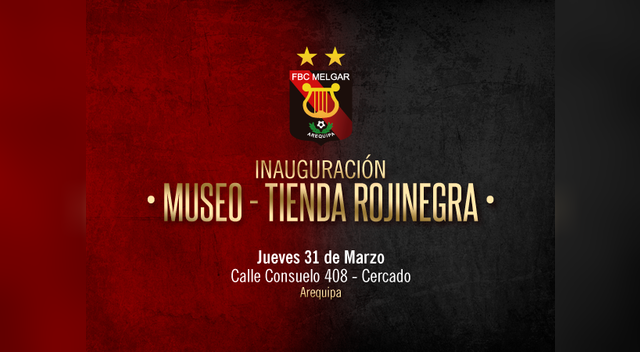 Por los 101 años de existencia, la Administración del FBC Melgar inaugurará las recientemente remodeladas áreas del local histórico ubicado en la Calle Consuelo. En los ambientes restaurados y especialmente acondicionados, funcionará desde la citada fecha el Museo del Club en el que se podrá apreciar los distintos trofeos que ha obtenido nuestro equipo de fútbol a lo largo de su existencia, así como fotografías y otros recuerdos. También, se ha habilitado la Tienda Rojinegra gracias a Walon Sport, en la que todos los hinchas y simpatizantes podrán adquirir indumentaria deportiva y otros souvenirs oficiales.