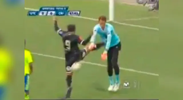 Con el encuentro empatado y sin muchas opciones de gol en ambas porterías, el delantero de UTC intentó llegar a un balón largo, pero no contó con que Diego Penny atraparía antes el esférico golpeándolo en el estómago.