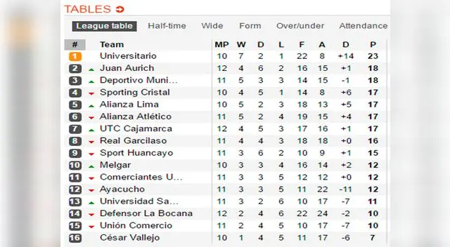 - Tabla Liga 1