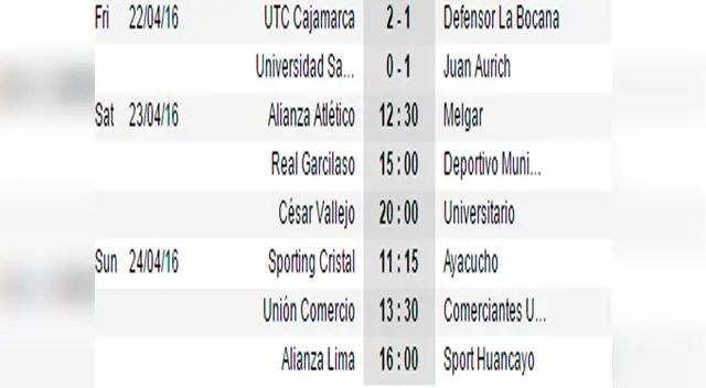 Alianza Lima buscará seguir en ascenso ante Sport Huancayo en Matute. El otro Alianza, Atlético, recibirá al alicaído Melgar y apunta a hacer respetar la casa para demostrar por qué es la sensación del Apertura.En otros partidos, UTC romperá fuegos de la fecha 12 el viernes ante La Bocana en Cajamarca. Ese mismo día San Martín recibirá a Juan Aurich en el Callao. El domingo Unión Comercio buscará olvidar la derrota ante la "U" cuando reciba en Moyobamba a Comerciantes Unidos.NO TE LO PIERDAS: Iván Bulos y Alexi Gómez pasan el susto de sus vidas en ChileEL DATO:El campeón del Torneo Apertura clasificará a las semifinales por la definición del Descentralizado 2016.