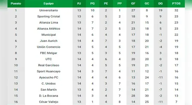 - Tabla Liga 1