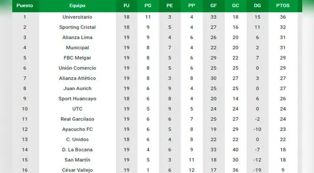- Tabla Liga 1