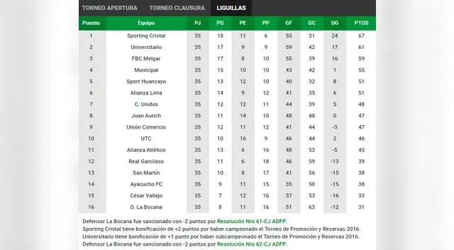 - Tabla Liga 1