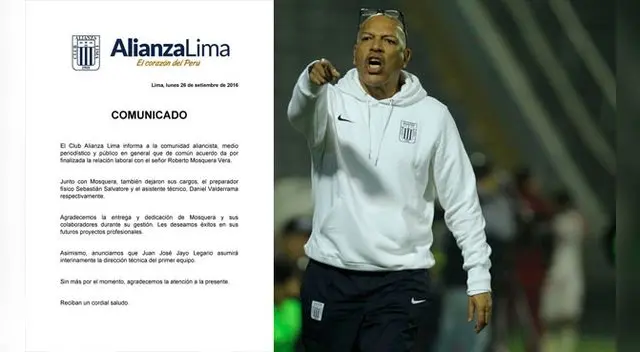 Roberto Mosquera dejó de ser entrenador de Alianza Lima desde el domingo y ante ello la dirigencia íntima lo hizo oficial mediante un comunicado. El empate con Alianza Atlético en Matute fue el detonante para que "Mou" dejara al equipo sin cumplir su contrato pero la directiva no actuó de la noche a la mañana, otros fueron los factores que desencadenaron su adiós.