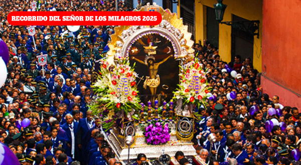 El anda del Señor de los Milagros recorrerá los alrededores del Hospital Dos de Mayo y Almenara. Luego seguirá por los jirones Huánuco, Puno, Antonio Bazo, Tarata y Cangallo. Además, pasará frente al Palacio de Justicia, donde recibirá un homenaje institucional, antes de retornar a las Nazarenas.