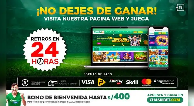 Los medios de pago son variados, ajustándose a la comodidad de los clientes de Chaskibet. En este punto, los usuarios pueden realizar dicho proceso por medio de Visa, Mastercard, Pago Efectivo, Paysafecard, Neteller, Skrill o transferencia bancaria.