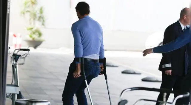 El tenista español fue captado saliendo de un hospital en Barcelona apoyado de unas muletas.