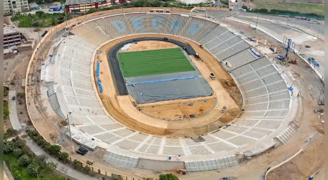 En el estadio de la Decana de América, actualmente se realiza la colocación del césped sintético y también el asfaltado de la pista atlética.