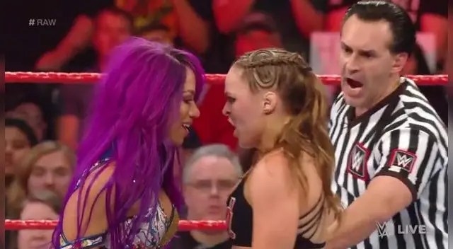 - Sasha Banks cambia con Bayley, pero es atacada por Ronda Rousey que busca hacerle su llave de sumisión.