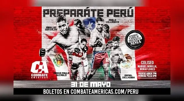 El Combate Américas, reconocida empresa de Artes Marciales Mixtas (MMA), realizará por primera vez en el Perú -y Sudamérica- uno de sus grandes eventos para el próximo viernes 31 de mayo (desde las 7 de la noche) en el Coliseo Manuel Bonilla, del distrito de Miraflores (Lima). Las entradas para “Combate Perú” saldrán a la venta próximamente en Joinnus.com.