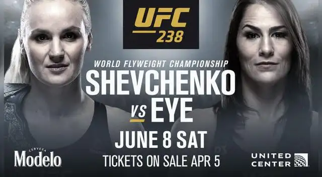 Tras derrota la a la excampeona de peso paja, la polaca Joanna Jędrzejczyk, la peleadora kirguisa que representa al Perú en UFC (máxima compañía en el mundo de las artes marciales mixtas) tendrá que superar a un duro oponente como la norteamericana Jessica Eye, quien viene de tres triunfos consecutivos ante Kalinda Faria, Jessica-Rose Clark y Katlyn Chookagian. Valentina Shevchenko ha tenido una excelente preparación a cargo del entrenador Pavel Fedotov y su hermana Antonina Shevchenko -como sparring- en el gimnasio tailandés Tiger Muay Thai y, por esta razón, no tuvo problemas para llegar al peso correcto (57 kg.) previo al UFC 238.