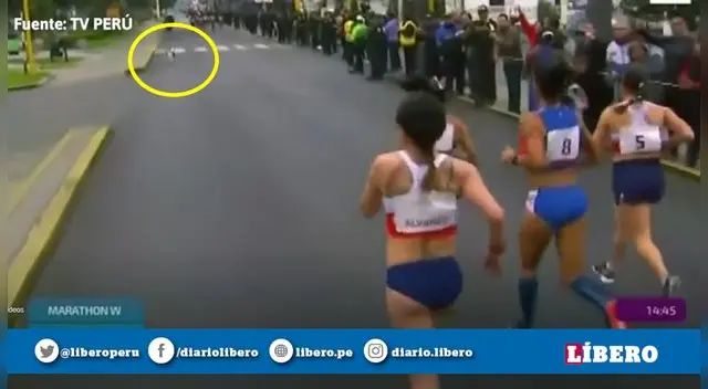 Gladys Tejeda tuvo un "competidor" inesperado en la prueba de maratón en Lima 2019. Un inocente perrito entró al circuito y tuvo que ser retirado por la policía.
