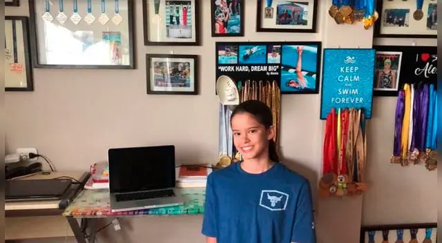 El brote del coronavirus obligó a cambiar su estilo de entrenamiento. Respetando el aislamiento social obligatorio, Alexia entrena en su hogar y cumple con sus clases escolares. Como miles de jóvenes estudiantes peruanos, la nadadora lo hace de manera virtual.