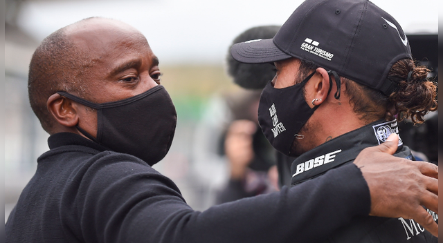 Tras culminar las 66 vueltas y ya con Lewis Hamilton como ganador, al británico se le notó muy emocionado por superar el récord de Schumacher. Luego de saludarse con su equipo, fue a buscar a su padre.