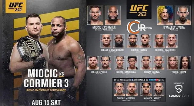 Stipe Miocic ganó por decisión unánime aDaniel Cormieren la pelea estelar deUFC 252.Marlon "Chito" Vera derrotó por KO aSean O'Malley.