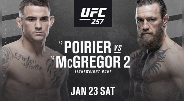 UFC 257 Poirier vs McGregor 2 será el primer super evento de UFC este 2021. Tras siete años, Conor McGregor y Dustin Poirier se volverán a enfrentar en un octógono en el 'segundo asalto' de su historial de enfrentamientos. A continuación, conoce todos los detalles del evento que se desarrollará en el Etihad Arena de las Islas Yas en Abu Dhabi, Emiratos Árabes Unidos.