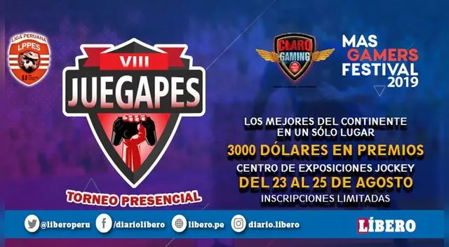 También llegarán 30 gamers de diferentes naciones del continente para participar en las 2 modalidades que ofrece JUEGAPES que son Individual y Clanes. El evento se llevará a cabo los días 23, 24 y 25 de agosto en el Centro de Exposiciones del Jockey con la convención mas grande de videojuegos y tecnología del Perú que es Claro MasGamers Festival 2019.