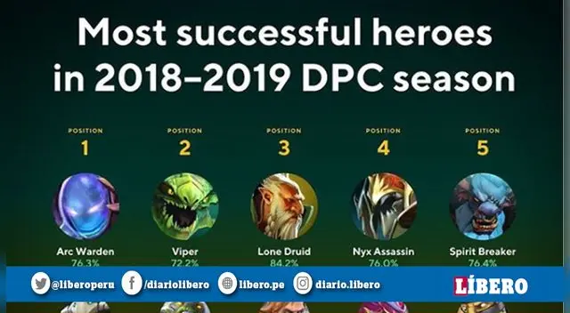 Se trata de los héroes que han tenido el mayor porcentaje de partidas ganadas durante la temporada pasada de acuerdo a su posición. En la siguiente nota, te resumiremos la información que puede ser muy útil durante todo The International 2019.