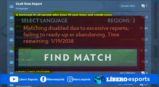 Los jugadores con un puntaje inferior a los 3 dígitos, por los 500 puntos, están siendo baneados hasta el 2038. Este ban es una de las respuestas contra los jugadores más tóxicos y nada cooperativos que existen en Dota 2.