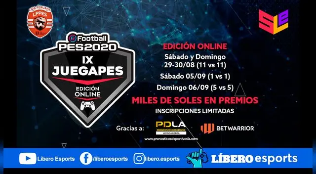 El torneo llega gracias a Betwarrior y Pronósticos Deportivos Latinoamérica y se realizará entre el 24 de agosto y el 6 de septiembre. Los días centrales serán las finales que se jugarán el domingo 30 de agosto y domingo 6 de septiembre. Las narraciones y transmisiones se realizarán por la página de Facebook "Liga Peruana de PES".