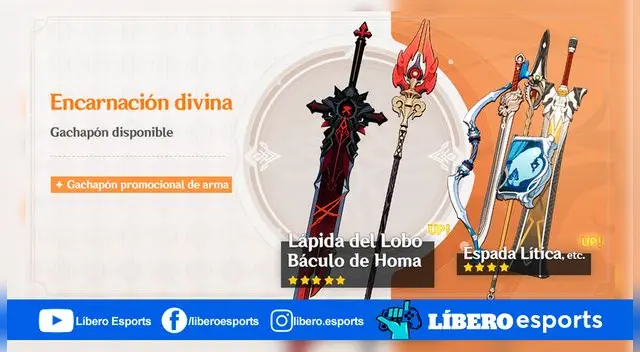 Con el gachapón "Encarnación Divina", la probabilidad de obtener el arma exclusiva de 5 estrellas Báculo de Homa (lanza) y el arma de 5 estrellas Lápida del Lobo (mandoble) será mucho mayor. A su vez las armas exclusivas de 4 estrellas Espada Lítica (mandoble) y Lanza Lítica (lanza), y las armas de 4 estrellas Rugido del León (espada ligera), Arco del Sacrificio (arco) y Sinfonía de los Merodeadores (catalizador) serán más fáciles de obtener.