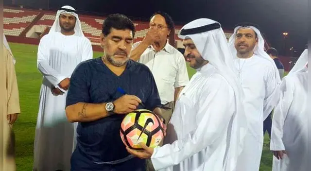 Diego Maradona, el nuevo entrenador del equipo Al Fujairah SC, de la segunda división de Emiratos Árabes Unidos y quien ya había dirigido equipos de ese país en el 2011.