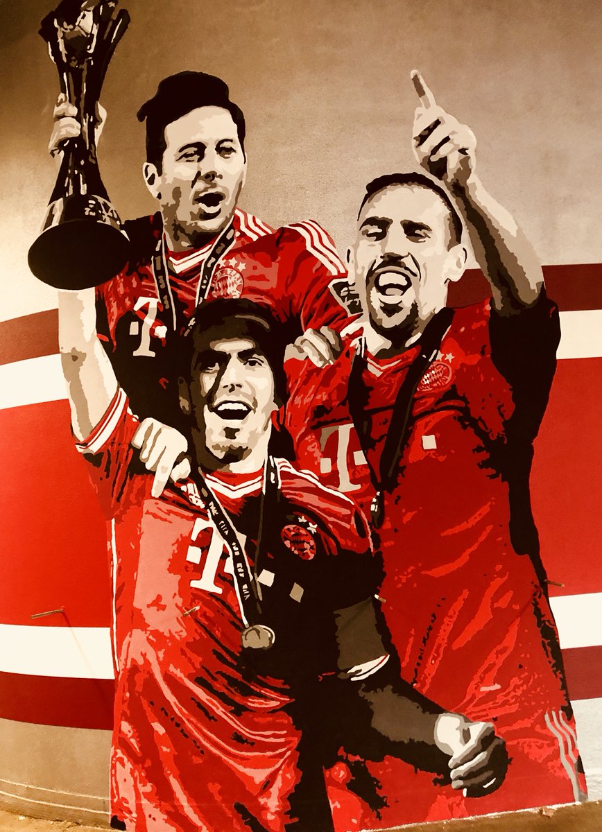 El bombardero aparece junto a figuras como Philipp Lahm y Franck Ribéry levantando la copa del Mundial de clubes. Bastian Schweinsteiger sale en otra imagen alzando la ensaladera de la Bundesliga y el histórico portero alemán, Oliver Kahn aparece gritando al cielo.