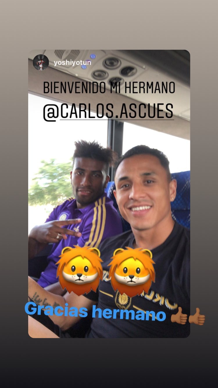 En la cuenta de Instagram que tiene Yoshimar Yotún se pudo ver cómo en una 'storie' está la fotografía de estos dos peruanos, siendo un mensaje adjunto: "Bienvenido mi hermano, @Carlos.Ascues". A lo que el ex volante de Melgar respondió con 'dos leones' y un "Gracias hermano".