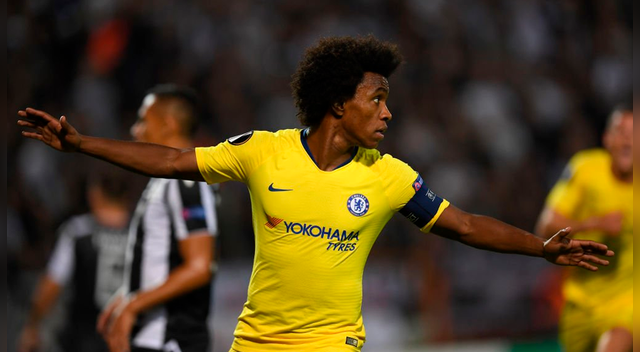 El volante brasileño Willian adelantó en el marcador al conjunto de Chelsea luego de una excelente jugada con el volante inglés Ross Barkley: pasaron 5 años para que el cuadro inglés vuelva a jugar la Europa League.