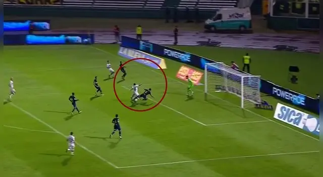Un buen pase para Matías Melluso, quien partió habilitado con la línea defensiva, hizo que llegue al área rival, por la zona izquierda. El lateral izquierdo de 20 años levantó la cabeza, divisó a su compañero llegando a toda velocidad por el medio y envió un centro al ras del césped.