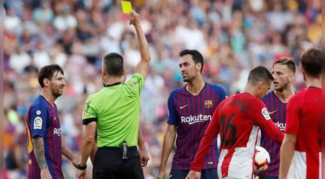La 'Pulga' se ganó la amarilla tras enfrascarse en una discusión con el árbitro luego del empate del Barcelona 1-1 ante el Athletic de Bilbao.