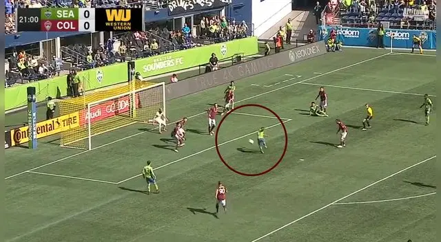Nicolás Lodeiro recuperó el balón por la zona derecha del área y, levantando la cabeza, vio a Raúl Ruidíaz dando unos pasos atrás. El delantero definió con un potente disparo de pierna derecha, haciendo que la estirada del portero Tim Howard sea en vano. El Seattle Sounders lo celebra.