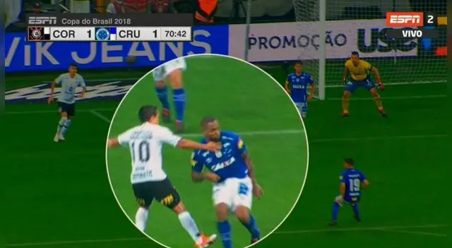 Tras revisar la acción, el juez Wagner do Nascimento cambió su decisión y retrocedió la jugada, cobrando la falta inicial al defensor de Cruzeiro. Jadson fue amonestado con amarilla y Pedrinho no ocultó su dolor por el gol anulado. Todos los jugadores de Corinthians no podían creer lo que pasó.