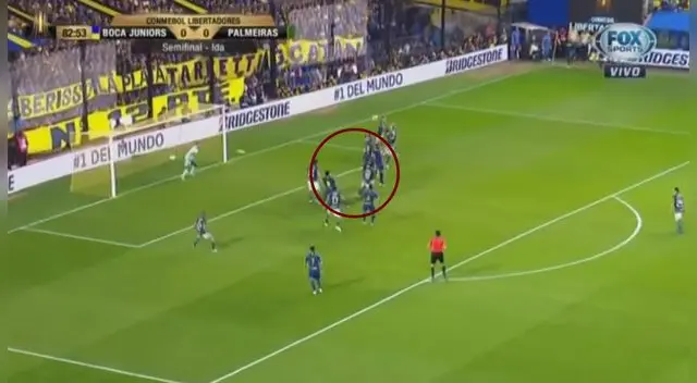 Felipe Melo se elevó lo más que pudo para despejar el peligro de su área, pero la potencian en su salto no fue suficiente. A su espalda, Darío Benedetto también fue en busca del balón por la vía aérea y si pudo conectar con potencia y dirección, venciendo al portero de Palmeiras, Weverton, que se vio sorprendido ante la jugada.