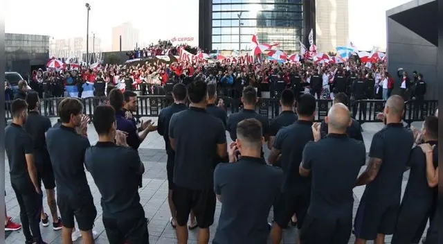 A muy poco de jugarse una final de la Copa Libertadores, el plantel de River Plate salió a saludar a sus hinchas, quienes se dieron cita en los alrededores del hotel para alentarlos.