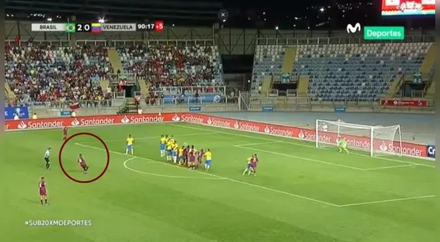 La Selección de Venezuela tuvo un buen partido ante Brasil en el Sudamericano Sub-20, pero la eficacia de cara al gol no fue la mejor. Esta tarde, la 'vinotinto' sufrió para poder anotar, aunque regaló una perlita en el final del encuentro, nuevamente a cargo de Samuel Sosa, una de las estrellas del torneo.