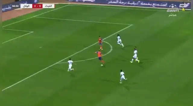 Sobre los 57’, la ‘Culebra’ robó el balón en el círculo central de la cancha y partió a toda velocidad a campo contrario. La defensa del Al Feiha se encontraba totalmente desordenada, porque salían en busca del descuento, y eso fue aprovechado por la eficiente zona ofensiva del Al-Hilal. Tras casi llegar a la media luna del área, André Carrillo soltó un pase a la izquierda.