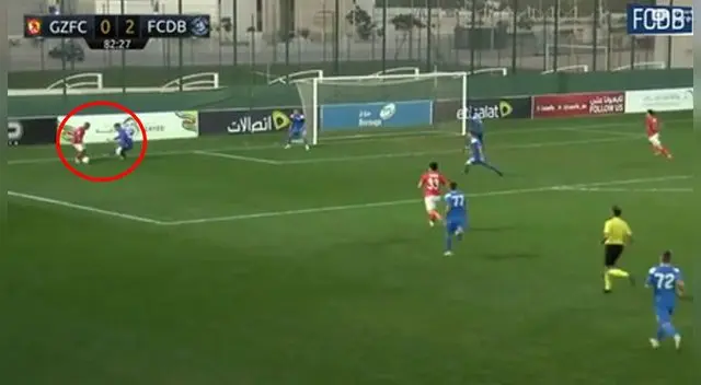 Roberto Siucho tuvo un genial debut con el Guangzhou Evergrande. Dejó en ridículo al portero rival al llevárselo dos veces en la misma jugada.