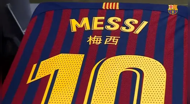 En las imágenes compartidas a través de las redes sociales oficiales (Twitter y Facebook) se visualiza el nuevo estampado que se vienen haciendo en la indumentaria. Tomando la camiseta de las principales figuras del Barcelona, lideradas por la de Lionel Messi, se puede ver el nombre en chino de cada uno estampado bajo los caracteres del habitual.